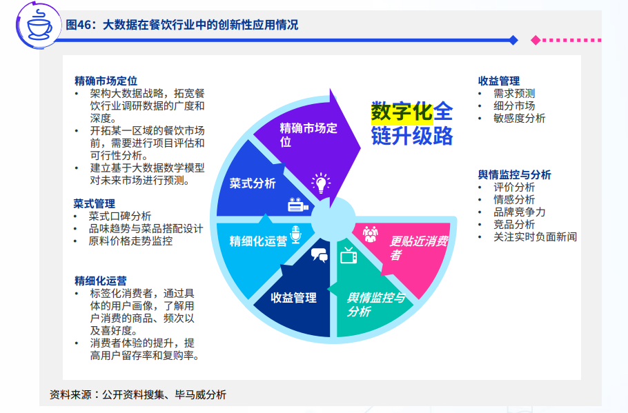 该报告认为,随着数字经济的不断发展,餐饮行业由要素驱动转变为创新驱动,数字化发展在引领效率提升、服务升级等方面成效显著。结合行业跨界发展大趋势,以数字化技术为基础的多元服务综合体时代将会到来。疫情使餐饮行业对数字化的探索更加务实和迫切,数字化赋能全链路、全场景和更智能、更实用的特点愈发突出。未来我国餐饮业将在5G大数据、云计算、人工智能、物联网等先进科技手段领域上持续探索,促进餐饮业全角度、全链数字化转型。